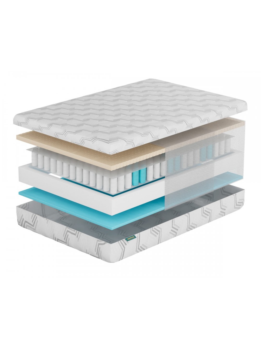 Толстый слой натурального латекса придаст матрасу отличные анатомические свойства, а 7-ми зональный пружинный блок Pocket Spring, шахматной сборки, будет точечно поддерживать позвоночник в правильном положении, позволяя отлично выспаться ночью.